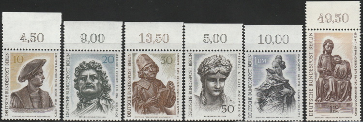 6 val kompl. ** – Mi. 303-308 – Offentlig konst i Berlin, 1300-1700-tal, olika motiv, bla. Evangelisten Markus, Madonnan och Kristus