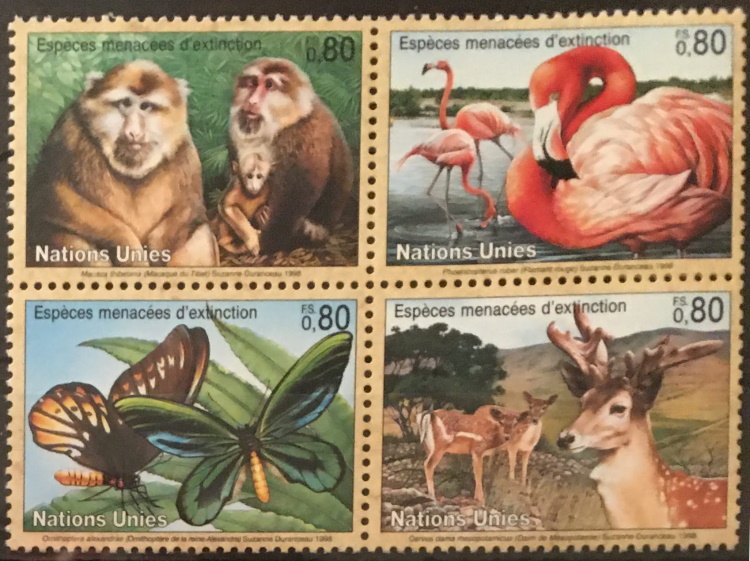 FN Geneve (Schweiz) – 4 kompl. ** – 4-block – Hotade djur 16,00 kr 4 val kompl. i 4-block ** – Scott #766-769 – Hotade djurarter: Tibetansk makak, Karibisk flamingo, Drottning Alexandras fjäril, Persik hjort I lager FN Geneve (Schweiz) - 4 kompl. ** - 4-block - Hotade djur mängd Lägg till i varukorg Relaterade produkter Snabbvisning Snabbvisning Namibia 1994 – 4 kompl. ** – Storkfåglar 15,00 kr Lägg till i varukorg Snabbvisning Snabbvisning Laos 1982 – 6 kompl. ** – Fåglar 28,00 kr Lägg till i varukorg Snabbvisning Snabbvisning Berlin 1984 – 1 kompl ** – Alfred Brehm 9,00 kr Lägg till i varukorg